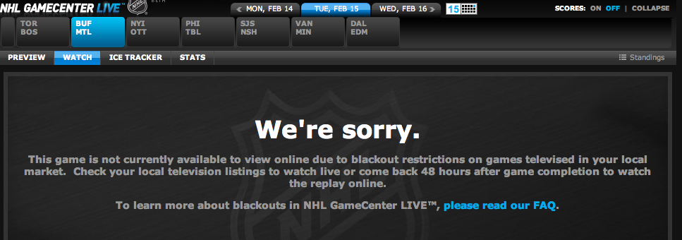 Television rights and blackouts have always been a course of contention, no more so than recently in Europe and my home in the UK, where we face average television coverage but also blackouts on our equivalent internet NHL package in the form of Game Center Live.