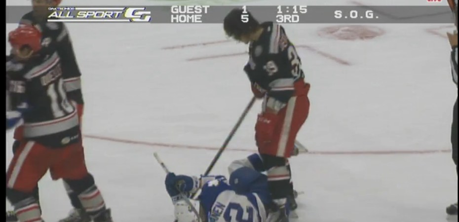 The sentence meted out to Sam Carrick however leaves me perplexed and incensed. Carrick is not an enforcer but he can look after himself and his team mates if necessary. On this occasion he was looking to breakaway from the official to support his team mate, who I would argue was in legitimate danger of being hurt by Bertuzzi. While Ben Moser stood around admiring the situation, I don’t blame Carrick for trying to get away from the linesman holding him.