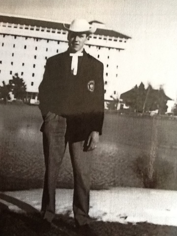 Terry Matthews outside the Broadmoor Hotel in Colorado which was a luxury complex where Great Britain stayed for two weeks. The team were all given Stetsons and bow ties on arrival.