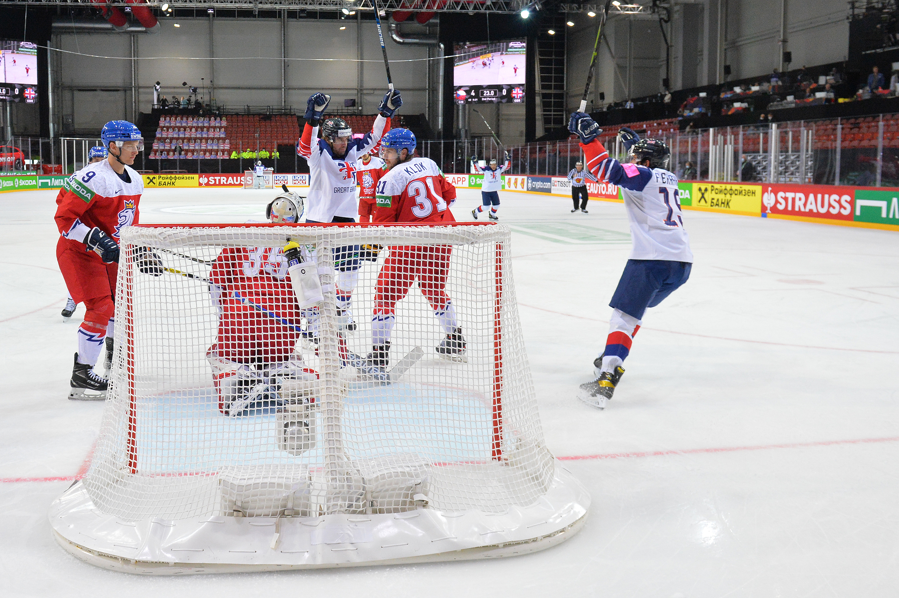 Great Britain almost took a shock lead inside the opening minute. A blast from the point by David Phillips resulted in a rebound that eluded his teammates.