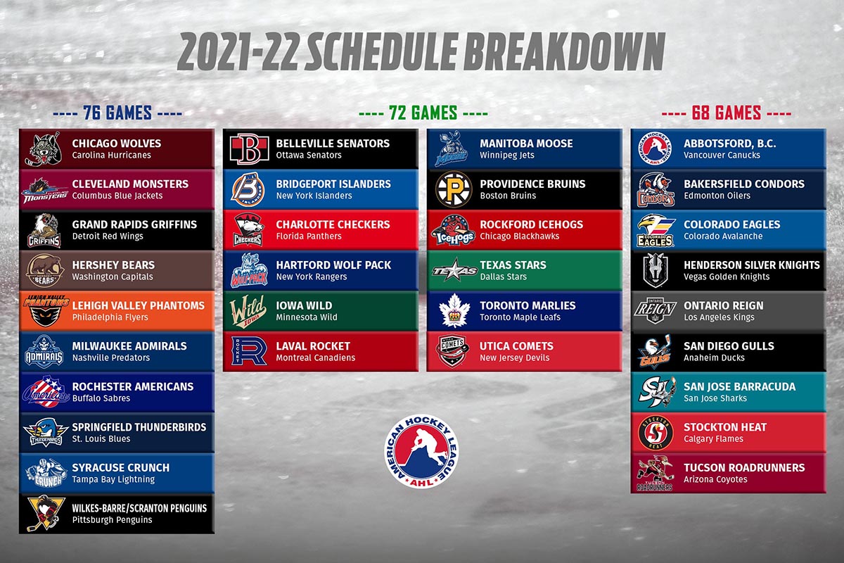 The 2021-22 AHL season is slated to start on October 15, 2021, and playoff berths will be determined by points percentage.