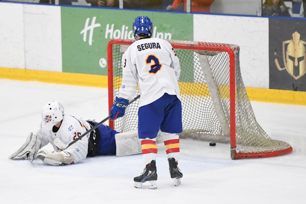 Spain arguably played their best hockey of the tournament thus far in the first five minutes of the middle frame. They almost took a shock lead through Joseph Tufet, who escaped unattended down the right side. His initial effort was denied and he was unlucky with a follow-up attempt to bank it off the goaltender.