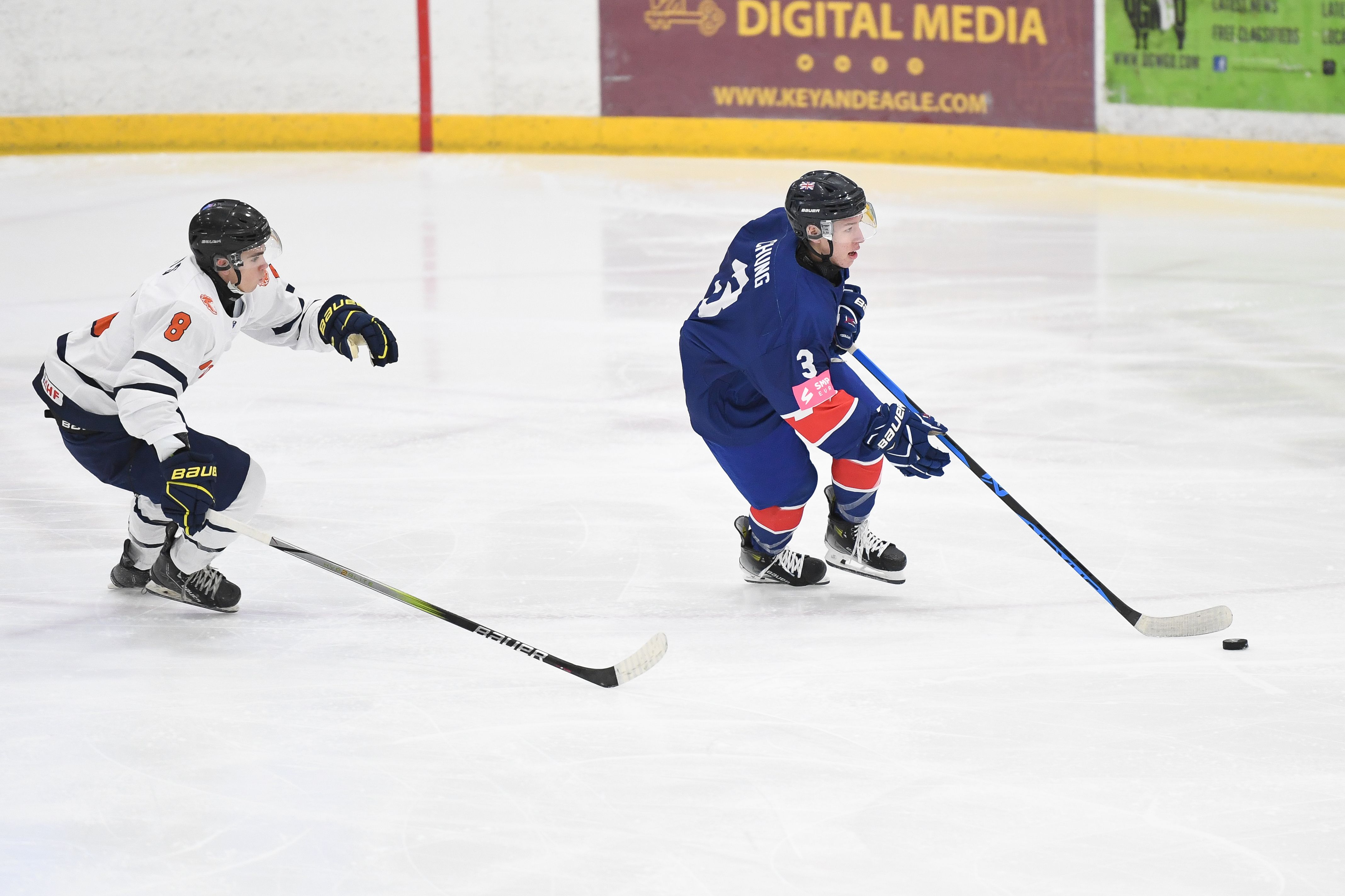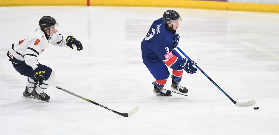 On the step up from U18 to U20 level: “It’s comfortable, it’s fast obviously but it’s a small rink so about making sure you use the surroundings well. The speed is no issue, concentrate on finding teammates and working as a team.”