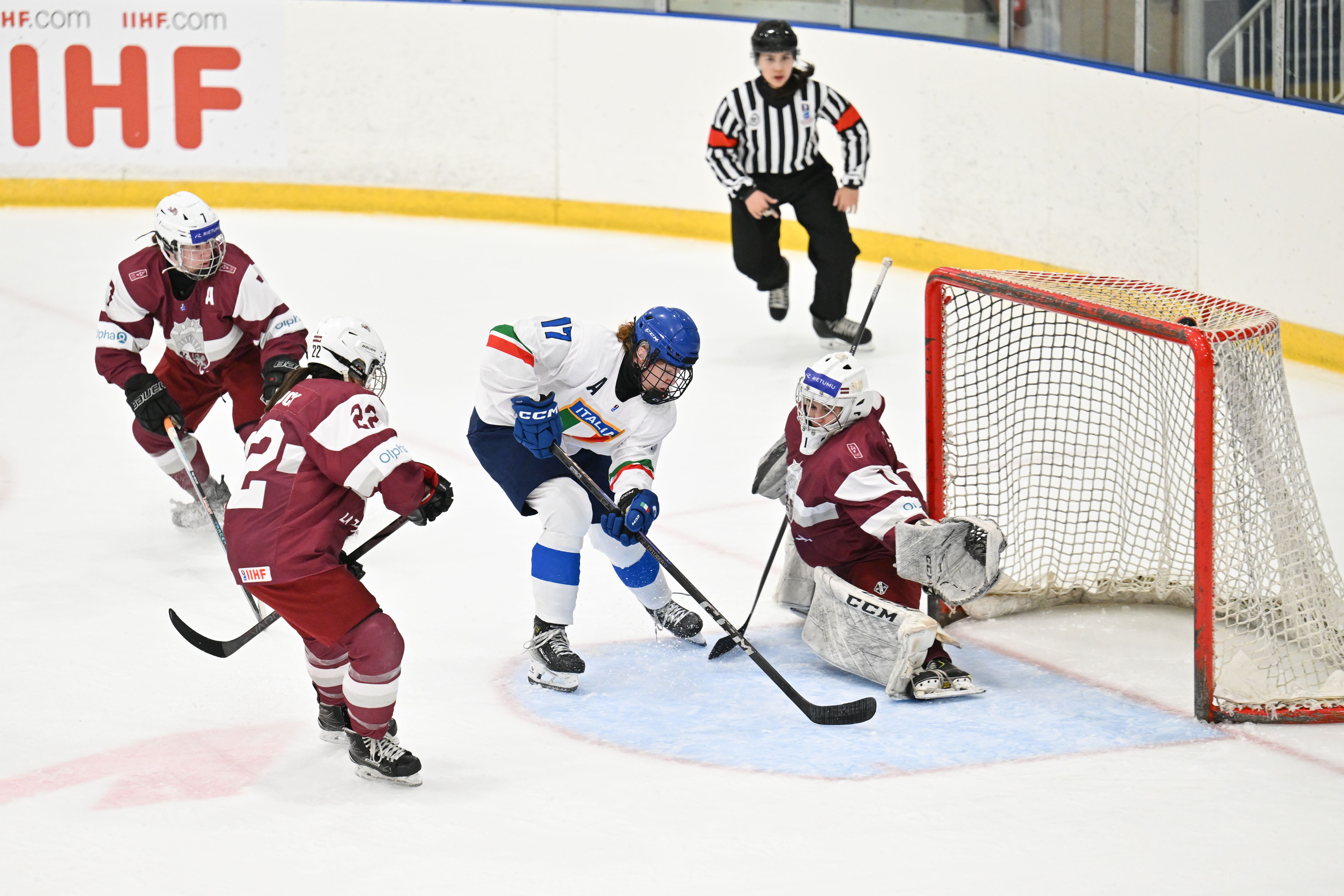 Latvia’s goaltender kept the score respectable with a string of fine saves before Italy sealed the deal with a fourth goal.