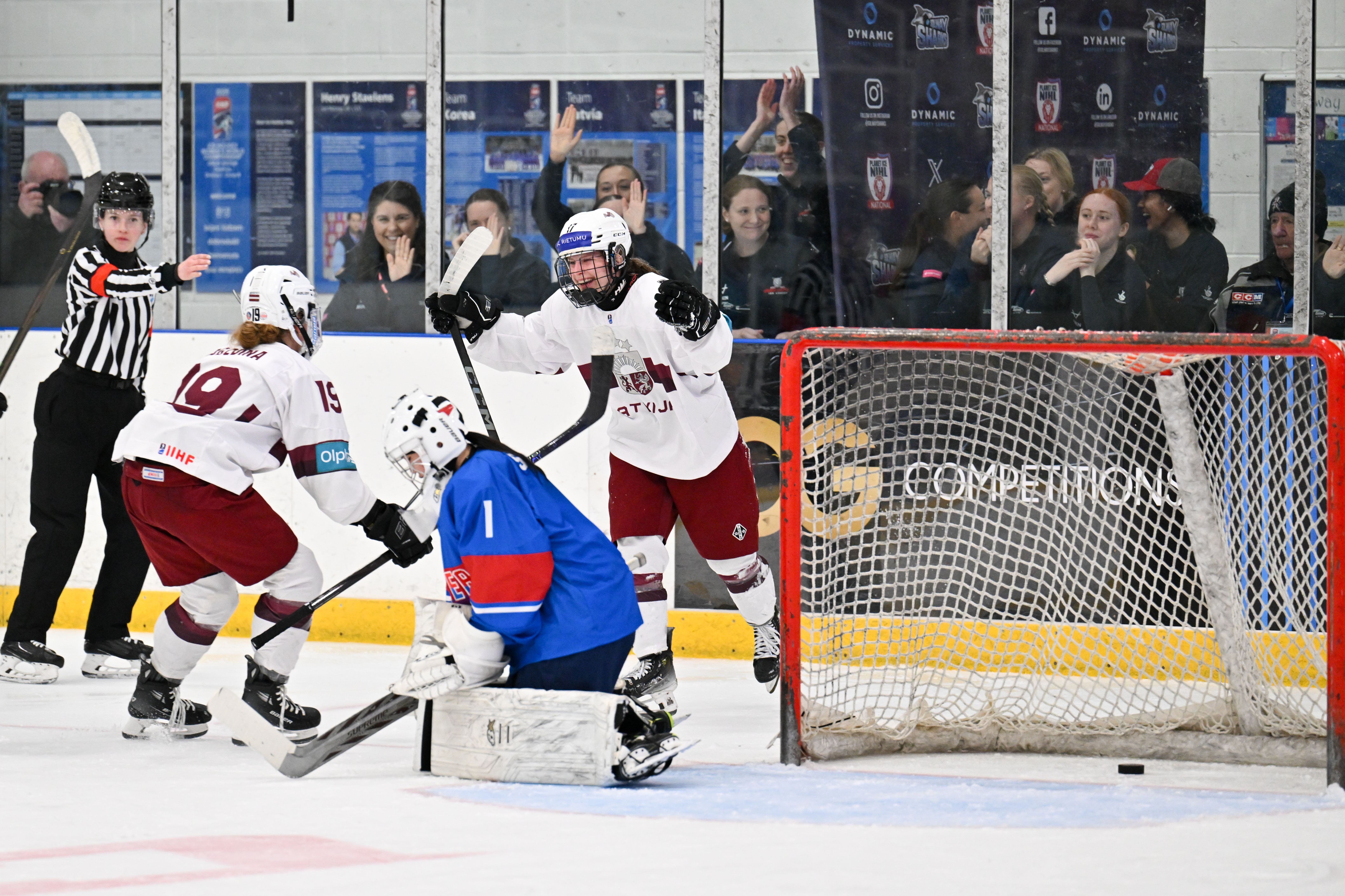 With three minutes remaining, Latvia scored with their first recorded shot of the game. On a broken play, against the run of play, Hanna Strause ripped a shot home from the right circle to tie the time at 1-1.