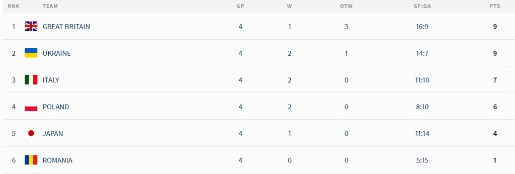 Only a combination of a regulation defeat for Ukraine (v Japan) and Italy failing to win in regulation (v Romania) would see Great Britain promoted without hitting a puck in anger.